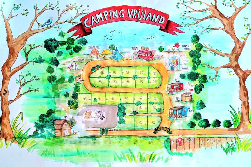 Als je een idee wil krijgen waar je wil gaan kamperen met je tentje, camper, caravan of vouwwagen, kijk dan even op de plattegrond. Hier vindt je het pleknummer maar ook de afmetingen van de plek die je wil gaan huren. Wel zo makkelijk als je bijvoorbeeld een heeele grote camper hebt!